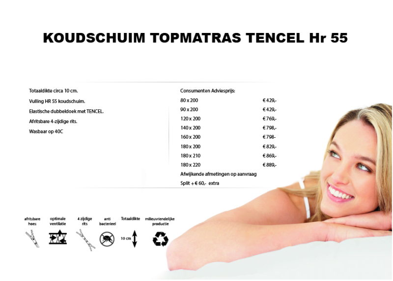 Koudschuim Topmatras 10 cm. Tencel HR 55